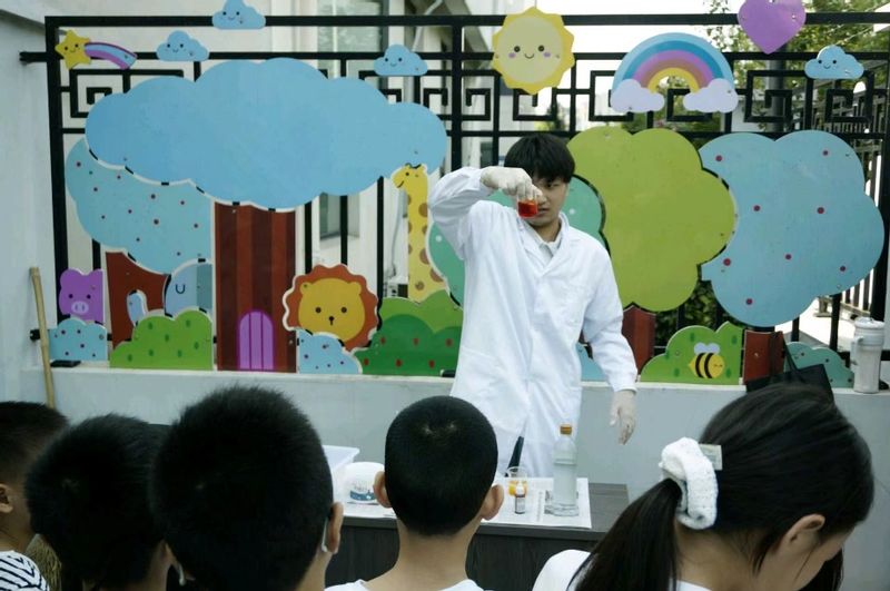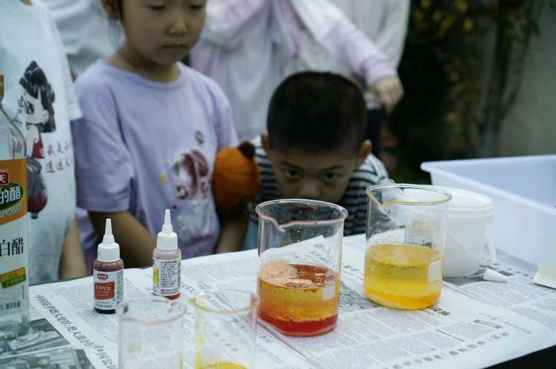 7月10日,广德市桐汭街道大木桥社区的户外广场上热闹非凡。 色色 赴该社区的乡村振兴实践营志愿者们,将实验场地迁至户外,“户外熔岩灯”化学科普小实验登场。作为“童享化学·七彩领航”系列活动的延续,本次实验继续将趣味化学与思政教育深度融合,让孩子们在阳光与欢笑中感受科学的神奇,在动手实践中领悟成长的道理。