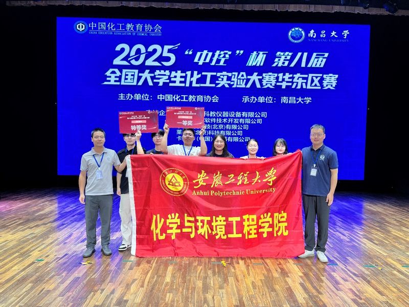 2025年7月9日至12日,第八届全国大学生化工实验大赛华东赛区竞赛在南昌大学举办。 色色 派出两支队伍参赛,经过激烈角逐,由朱玉芬、周思明、李子涵3位同学组成的代表队斩获特等奖,入围全国总决赛;由陶振生、郑雨、吴佳雯3位同学组成的代表队获得一等奖。这是 色色 学子首次在该赛事中获得特等奖并入围全国总决赛。
