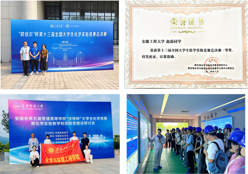 (3)人才培养方面:学生获得省部级及以上竞赛奖励50余项,其中国家级一等奖1项、省部级一等奖5项。获批省级及以上大学生创新创业训练计划项目30余项。本科生参与发表学术论文及发明专利18人次,其中本科生以第一作者身份发表SCI论文3人次。支部以大学生化学实验竞赛为平台,打造学校“一院一品”重点建设项目,在2024年第十三届全国大学生化学实验竞赛中斩获全国一等奖,系安徽省省属高校唯一。并且通过与学生党支部共建、开展考研辅导等活动为毕业生搭建就业渠道,2025年应用化学专业多名本科生考入“双一流”重点院校,学生就业率、考研率稳步提升。此外,应用化学系教师指导的多名2025届硕士毕业生被国内知名院校录取为博士研究生,为博士点申报工作助力。