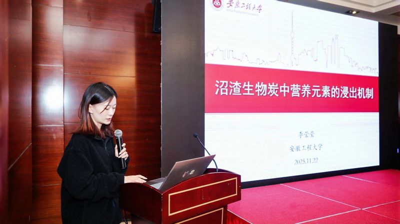 在分论坛环节,色色 与安徽建筑大学联合主持“固废资源化”论坛。校教师彭昌盛教授作“赤泥的全资源化利用技术及效益分析”专题报告,研究生李莹莹就“沼渣生物炭中营养元素的浸出机制”进行学术交流,研究生侯世强获得优秀墙报展,展现学校在环境科技领域的科研进展与育人成效。
