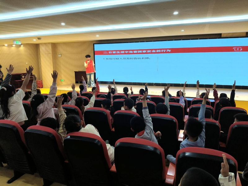 活动最后,志愿者们带领同学们一起学习精心编创的国家安全顺口溜,词句朗朗上口,让同学们在笑声中牢牢记住关键知识点,也让维护国家安全的责任意识在童心中悄然扎根。
