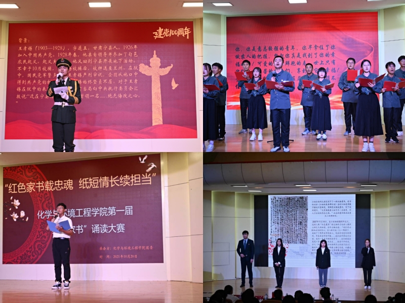 红色家书字字珠玑,句句箴言,展现着先烈们对革命事业的执着追求;家书薄一纸,情谊存永世,寄予父母,挚情妻子,但字里行间流露对国家对民族的担当精神。此次红色家书诵读大赛,拓展了党史学习教育渠道,丰富广大同学的业余生活,活跃了校园文化,激发了同学们担当精神,教育引导同学们从“红色家书”中重温草命历史、缅怀革命先烈、传承红色基因、牢记初心使命、坚定理想信念。