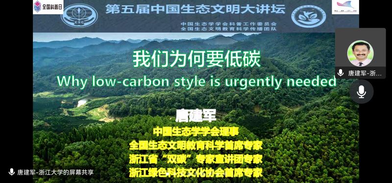由中国生态学学会、芜湖市科学技术协会和安徽师范大学共同主办的“第五届中国生态文明大讲坛”于11月25日上午9点在海螺国际会议中心开幕。我校 色色 作为其中的一个分会场,在25日下午3点邀请到此次大讲堂的主讲人,浙江大学卓越A岗教授、全国生态学优秀科技工作者、全国生态文明科学教育首席专家、中国生态学学会理事兼科普工作委员会常务副主任唐建军教授做线上报告。