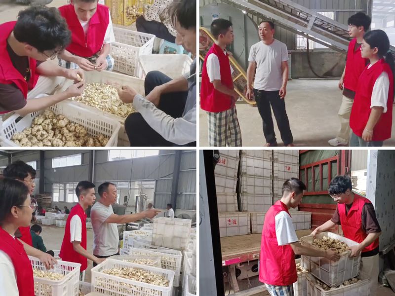 实践团队前往霍山县漫水河镇万家山村的志诚百合专业合作社,参观机器设备、百合加工流程等。在厂长和老员工的在旁指导下,实践团队成员切身感悟,轮流体验不同的岗位,手剥百合、百合过称、打包装车等,成员们深深意识到坚持创新驱动发展战略是全面推进乡村振兴、加快农业强国的强大动力。在与厂长交流过程中,了解到目前百合销售的主要渠道多为线下销售,正积极探索智能农业,进一步提高设备的机械化和智能化,队员们针对现况积极提出自己的建议和问题。